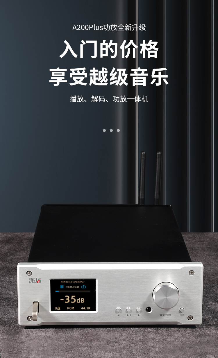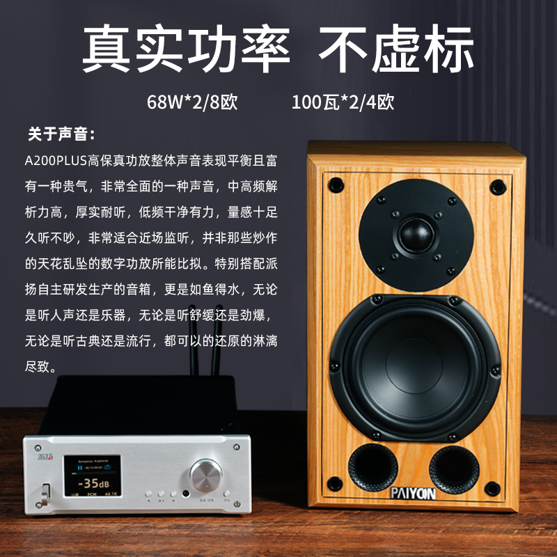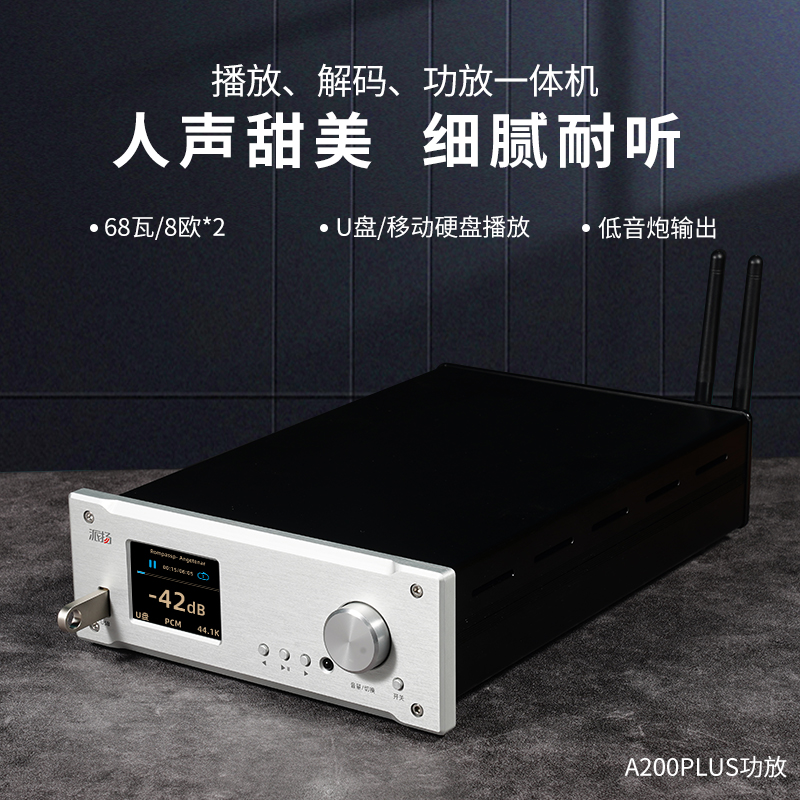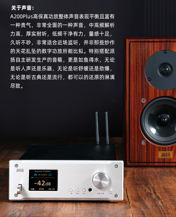 这是一台纯模拟信号的传统意义上的高保真小功放,功率不是很大,但是对于10个平方左右用来听高保真音乐和电脑桌面HIFI系统听音乐足够了,声音纯粹,不加添加剂,控制力好,体积小效率高的一个功放,价格不贵,可以满足一般的听音需要。