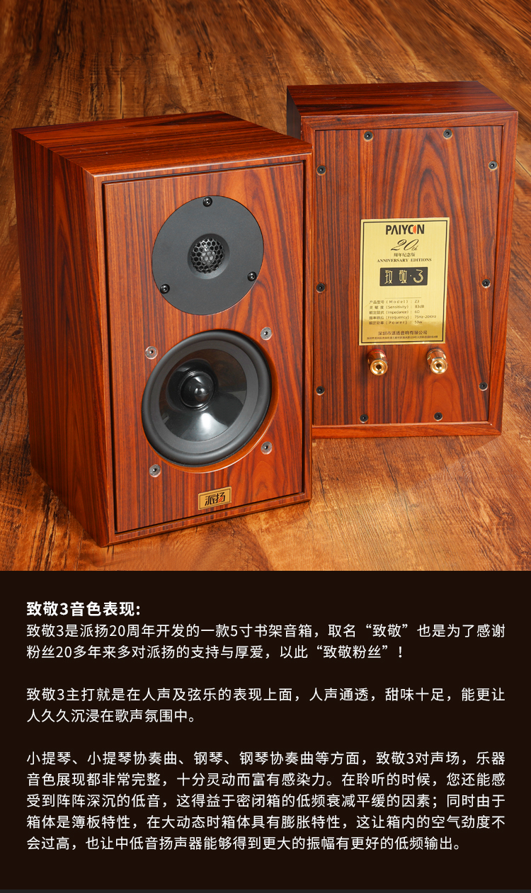 PAIYON派扬致敬3密闭式书架HIFI音箱 5寸无源高保真发烧小音响